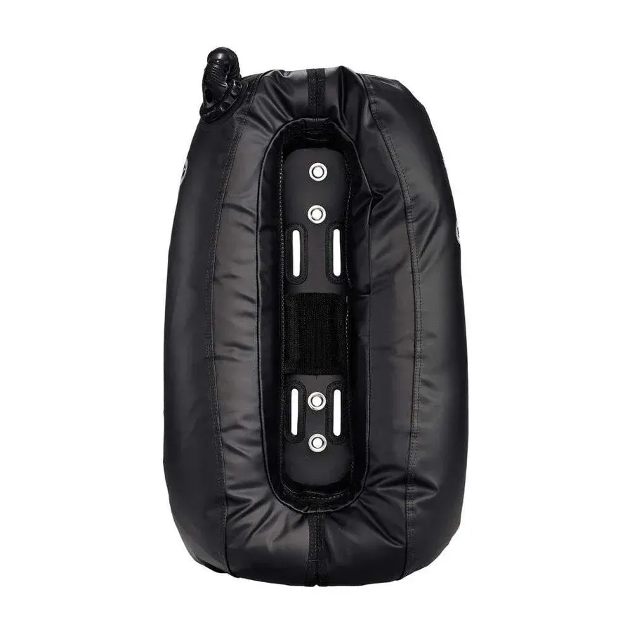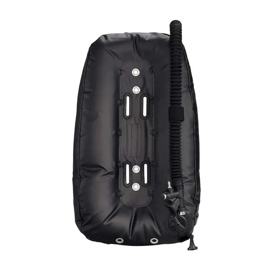 Single cylinder wings, often referred to as donuts, are oval shaped air cells or bladders that are not permanently attached to a harness. While single cylinder wings have their origins in the realm of technical diving, they are becoming very popular in the recreational community. Not only are these single cylinder wings streamlined, but due to their shape being a continuous loop, they are very stable underwater. There is no dramatic shift of air from left to right.
