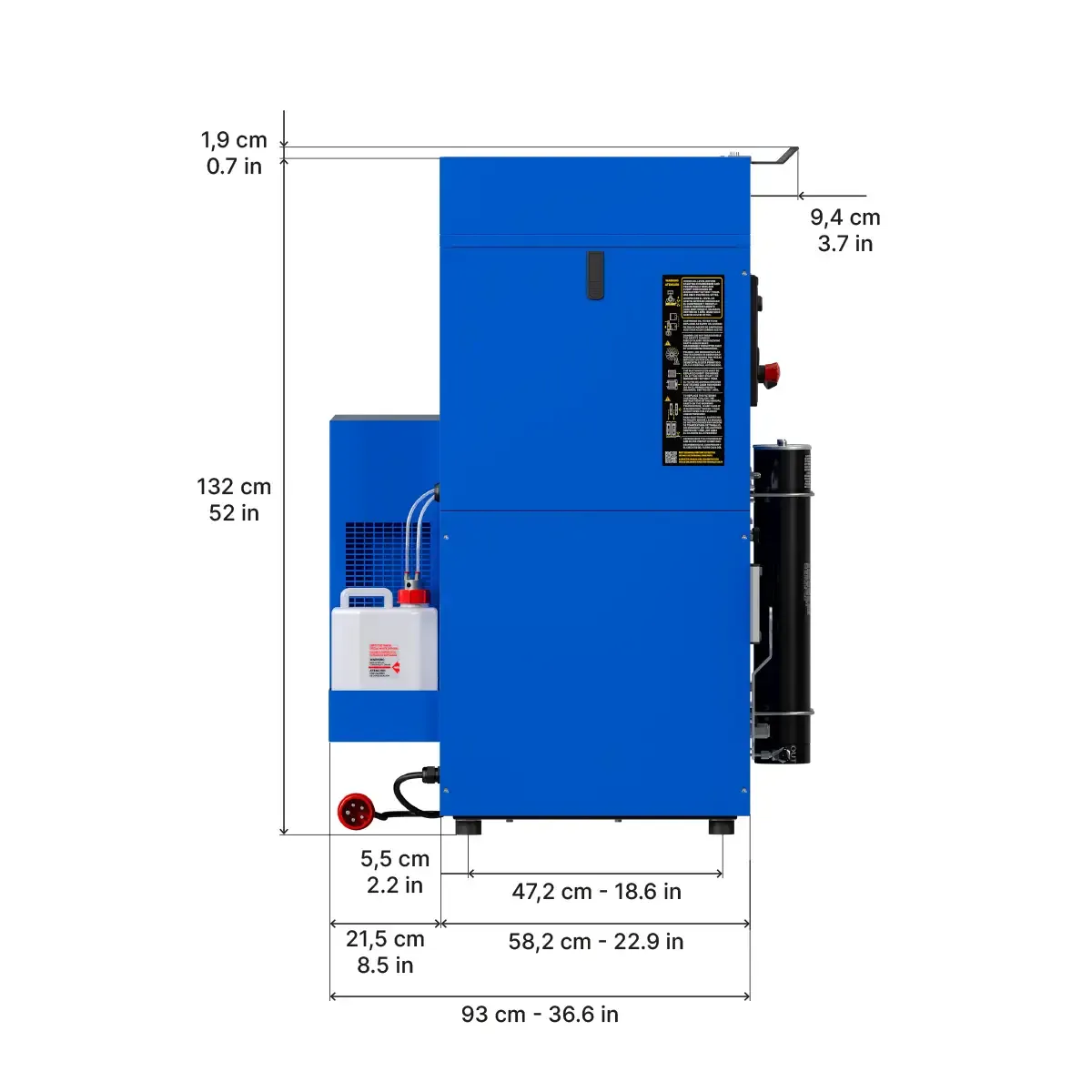The model Super Silent TPS is specially designed to minimize noise. It features an enhanced cooling and sound insulation system and an efficient filtering system with two Hyperfilter. Powered by electric motor, it is equipped with four different pump units, all in TPS (Tropical Plus Superdry) version, and with an intuitive control panel. For longer filter life, the Tornado high-pressure dryer is recommended.