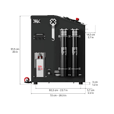 Placed after the last compressor separator and before the pressure maintenance valve, the purification system Hyperfilter enables reliable treatment of the breathing air, according to DIN EN 12021¹ when using original filter cartridges. The separator present between the 2nd and 3rd stages of the purification circuit makes it possible to extract as much moisture as possible. The filtering capacity with inlet air at 20°C and 200 bar is 3,050 m³.