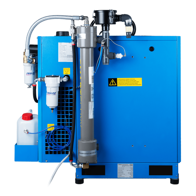 C-NITROX P320 is a Heavy Duty industrial screw compressor that delivers air at a pressure of 10 bar to a Parker membrane that separates nitrogen and oxygen, up to a maximum percentage of 36 percent oxygen.
