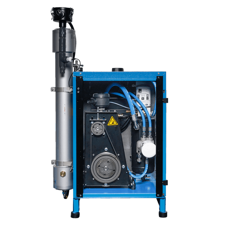 The C-NITROX 400 is a heavy-duty industrial screw compressor that supplies air at a pressure of 10 bar to the OXYSEP 7-15-40 OXYGEN nitrogen and oxygen separation membrane, up to a maximum of 40 percent oxygen. The enriched air can be compressed to 232 bar in combination with a high-pressure compressor. The percentage of oxygen obtained at the outlet can be raised to 40 percent using a valve accessible directly on top of the compressor. An oxygen analyzer allows checking the correct percentage by adjusting it using the appropriate valve.