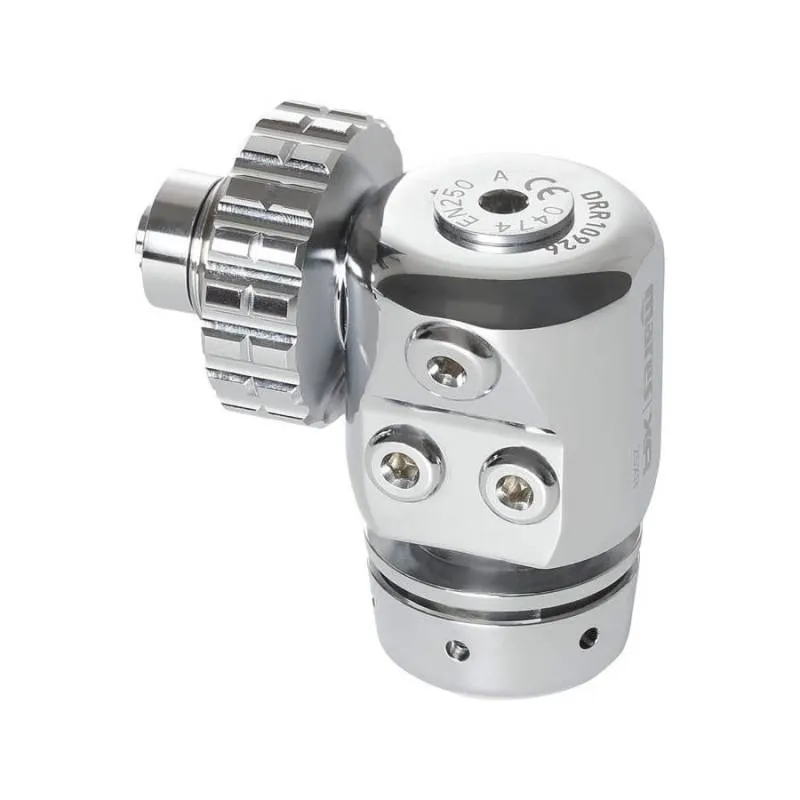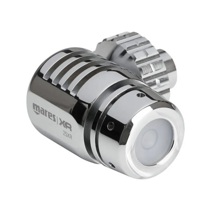 The 25XR - DR Full Tek Set features top-of-the-line Mares regulators for divers who want to push their limits. The 25XR first stages are designed specifically for twin-tank use, with ports oriented for downward hose routing, creating a streamlined setup. This design also ensures full accessibility to cylinder valves in a twin-cylinder configuration, making it ideal for technical diving.