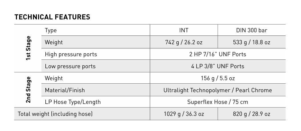 Mares has chosen to combine the SXS second stage with the proven 62X first stage, creating one of the strongest, lightest regulators in the industry.
