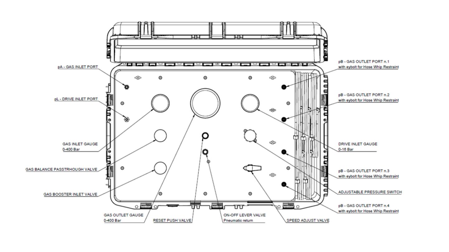 - pB - Gas Outlet port: (4x) Male Quick Connector SESO 1/8”