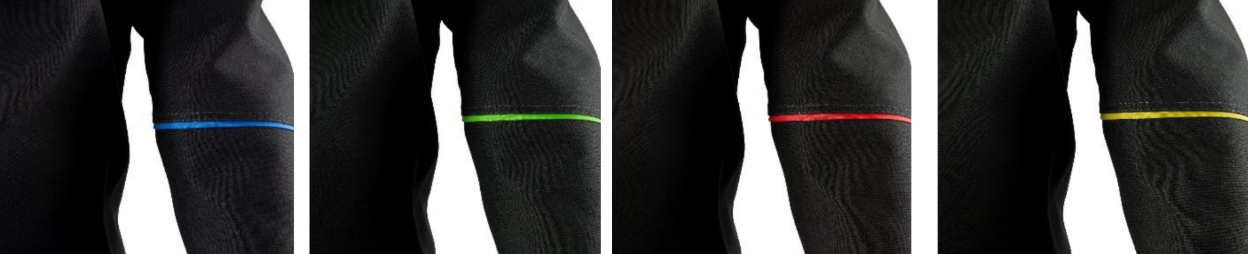 - Decorative stripes on arms and knees available in: green, yellow, grey, red, blue — or no stripes