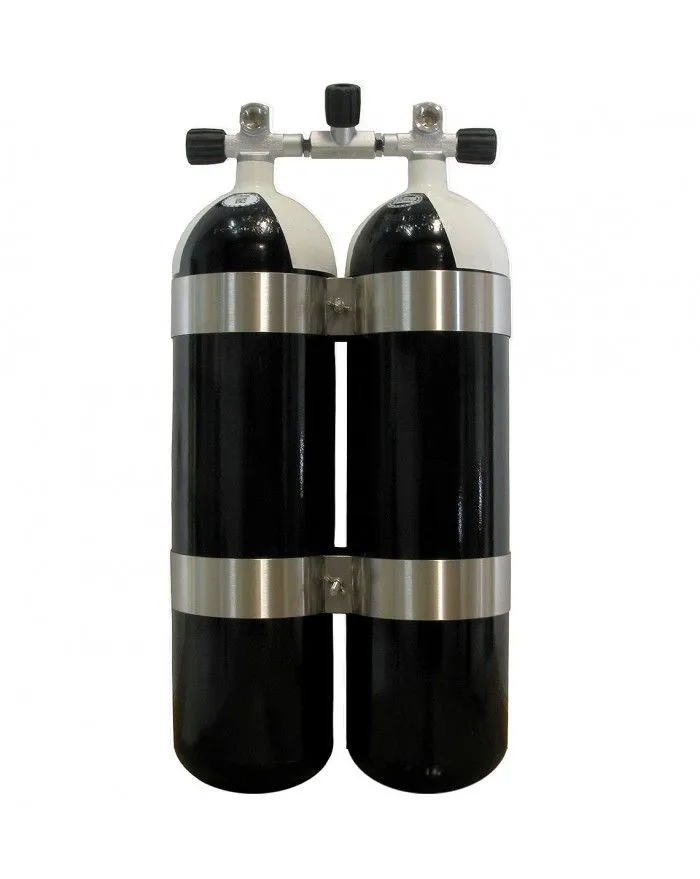 SANoSUB steel double tank (200/232bar) with manifold (valves + bridge) with isolation valve, and steel bands