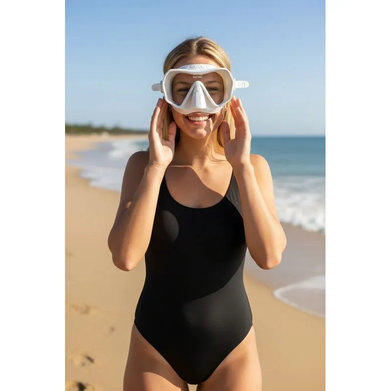 The SEAC Pura diving mask is the perfect choice for those looking for a professional diving mask that combines innovation and comfort. Its frameless design with tempered glass and high-quality silicone skirt ensures a flawless fit and a wide, natural field of vision, allowing you to experience every exploration with maximum comfort.