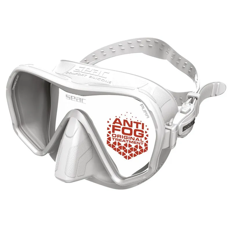 What makes the SEAC Pura truly special is the plasma antifog treatment, applied twice to provide a constant and lasting antifog effect. With a quick (gesture) Process, this technology transforms SEAC Pura into a true antifog diving mask: simply moisten the lenses and gently rub with your fingertips to maintain clear vision for the entire dive.