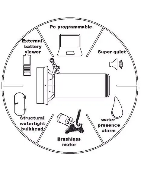 Maximum speed is with the aid of standard propeller with 3 blades and the load of an average diver with double tanks 12+12.