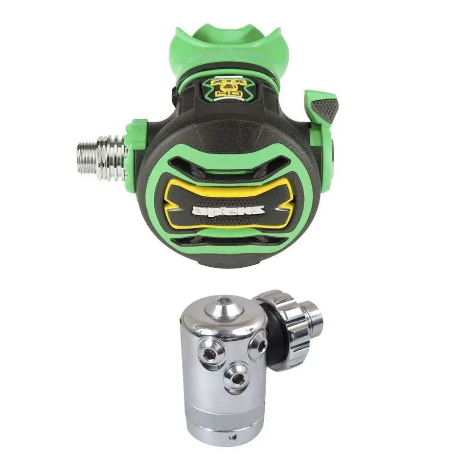 Istražite podvodni svijet s XTX40 O2 Clean verzijom, našim ulaznim Nitrox regulatorom opremljenim robusnim prvim stupnjem DS4. Dizajniran za pouzdanost i visoke performanse, DS4 ima precizno strojno obrađeno kućište s četiri srednjetlačna izlaza i jednim visokotlačnim izlazom. Apeks Nitrox regulatori prikladni su za uporabu s do 100 % kisika (O₂) te su označeni bojama radi lakše prepoznatljivosti.