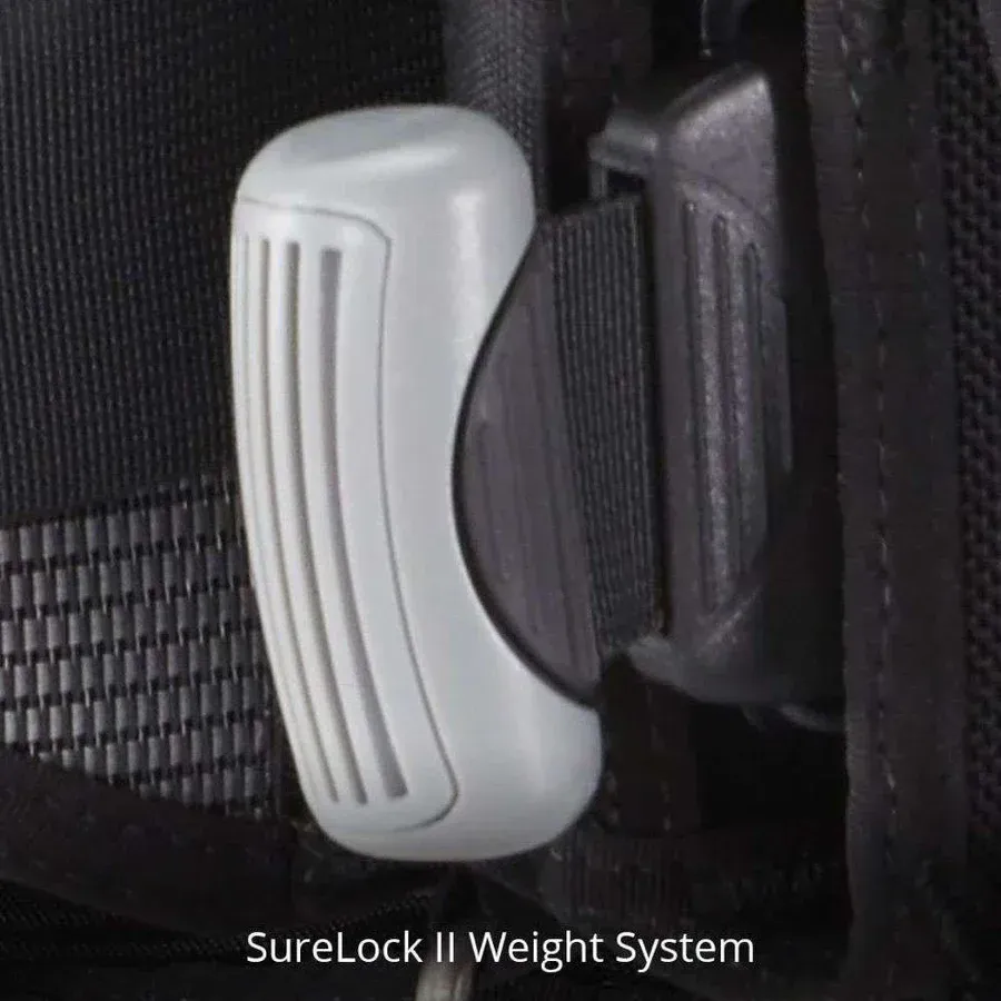 - PATENTIRANI SUSTAV UTEZA SURELOCK II - omogućuje vam jednostavno umetanje vrećice s utezima, a zvučni "klik" obavještava vas da su utezi sigurno pričvršćeni u kompenzatoru opterećenja. Nakon što su pričvršćeni, utezi se mogu otpustiti čvrstim povlačenjem ručke.