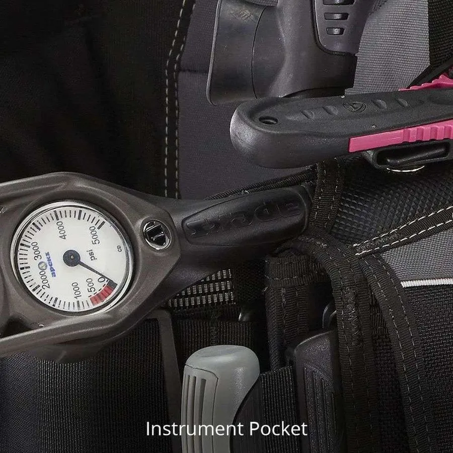 - SUSTAV OMOTAVANJA - ultra tanki unutarnji pojas koji pričvršćuje kompenzator opterećenja (BCD) uz tijelo kako bi se spriječilo izranjanje u vodi, a istovremeno ravnomjerno raspoređuje težinu držeći spremnik bliže vašem težištu tako da možete lako stajati i hodati uspravno.