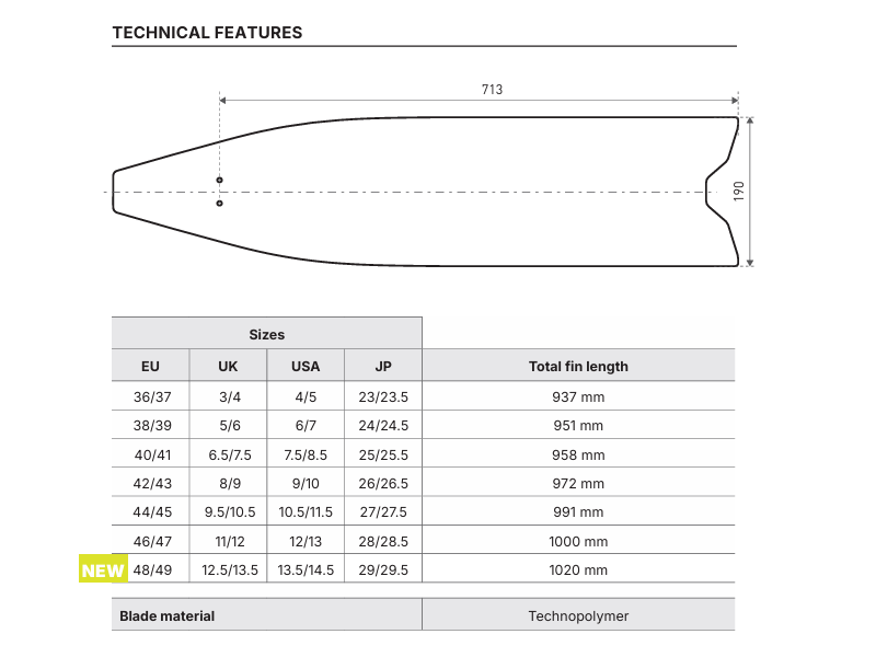 - Savitljivost lista do 30°, u odnosu na stopu peraje