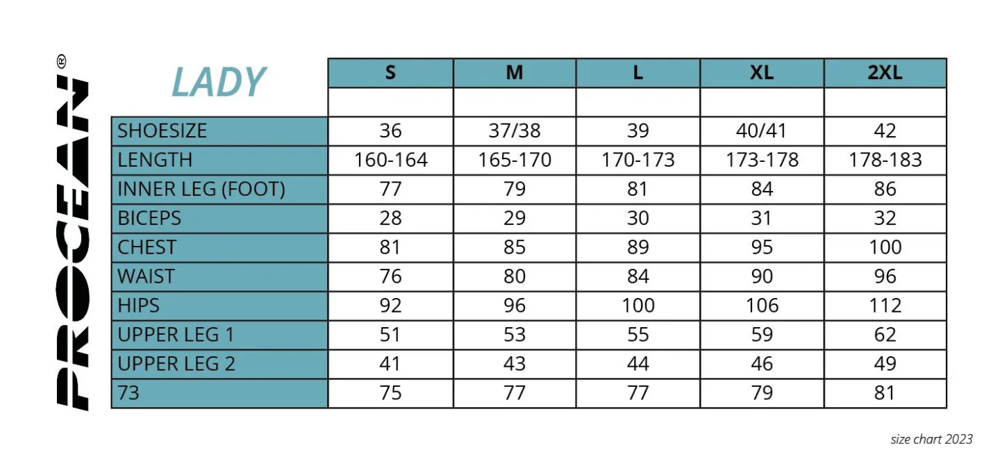 Standardne specifikacije Cave Poly Lady suhog odijela: