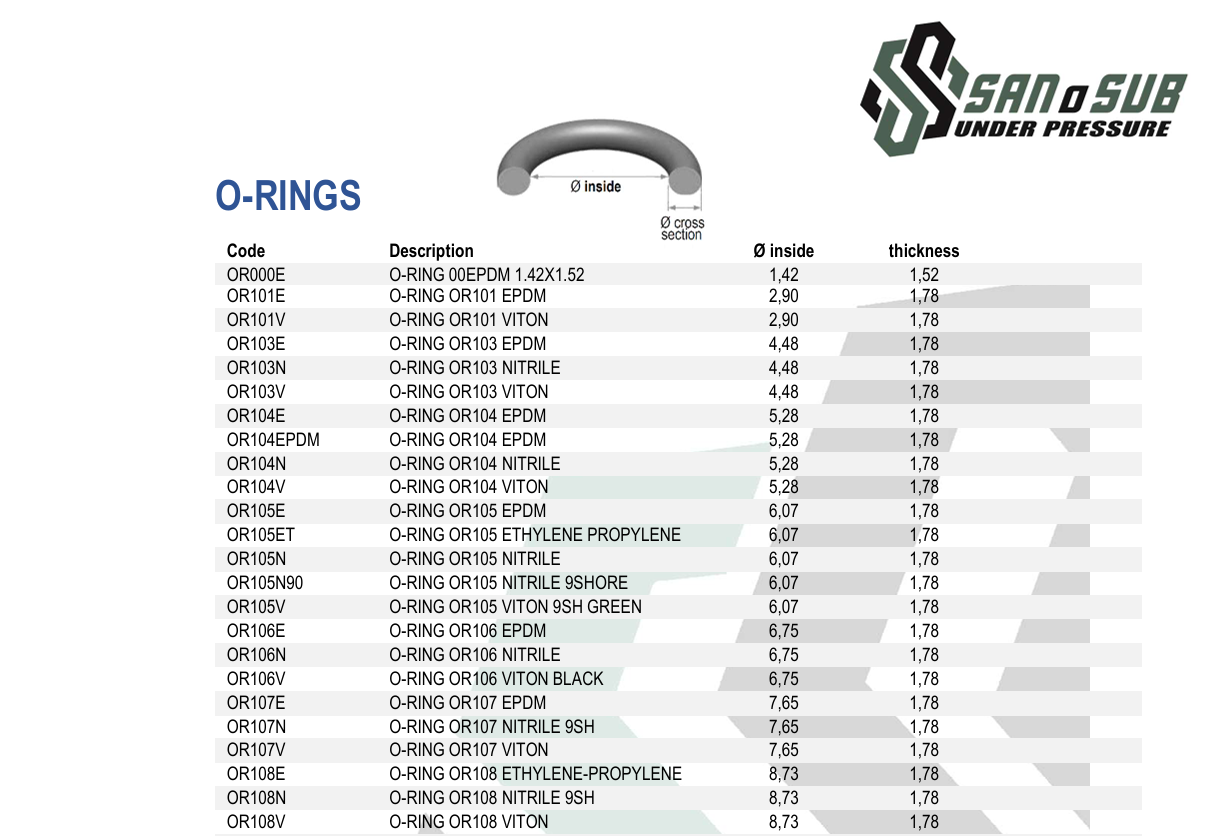 Veliki izbor O-ringova za ronilačku opremu. Odaberite dimenziju koja vam odgovara – cijena dostupna na upit.