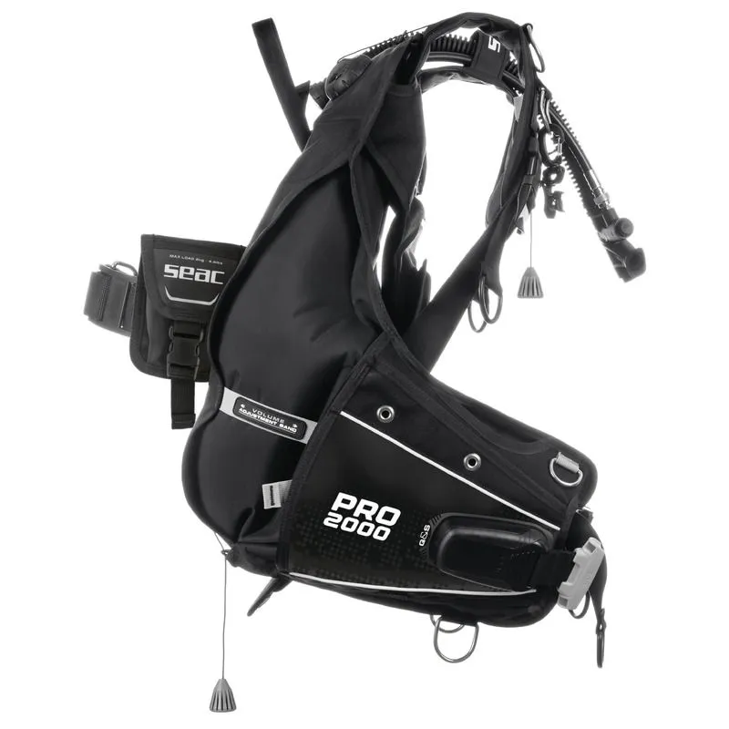 Sa 7 D-prstenova od nehrđajućeg čelika, džepovima s patentnim zatvaračem i sustavom odvodnje, integriranim Q&S sustavom utega te stražnjim Trim Weight džepovima, SEAC PRO 2000 nudi cjelovitu i dobro uravnoteženu konfiguraciju, idealnu za ronioce koji traže učinkovitost i pouzdane performanse u profesionalnom okruženju.